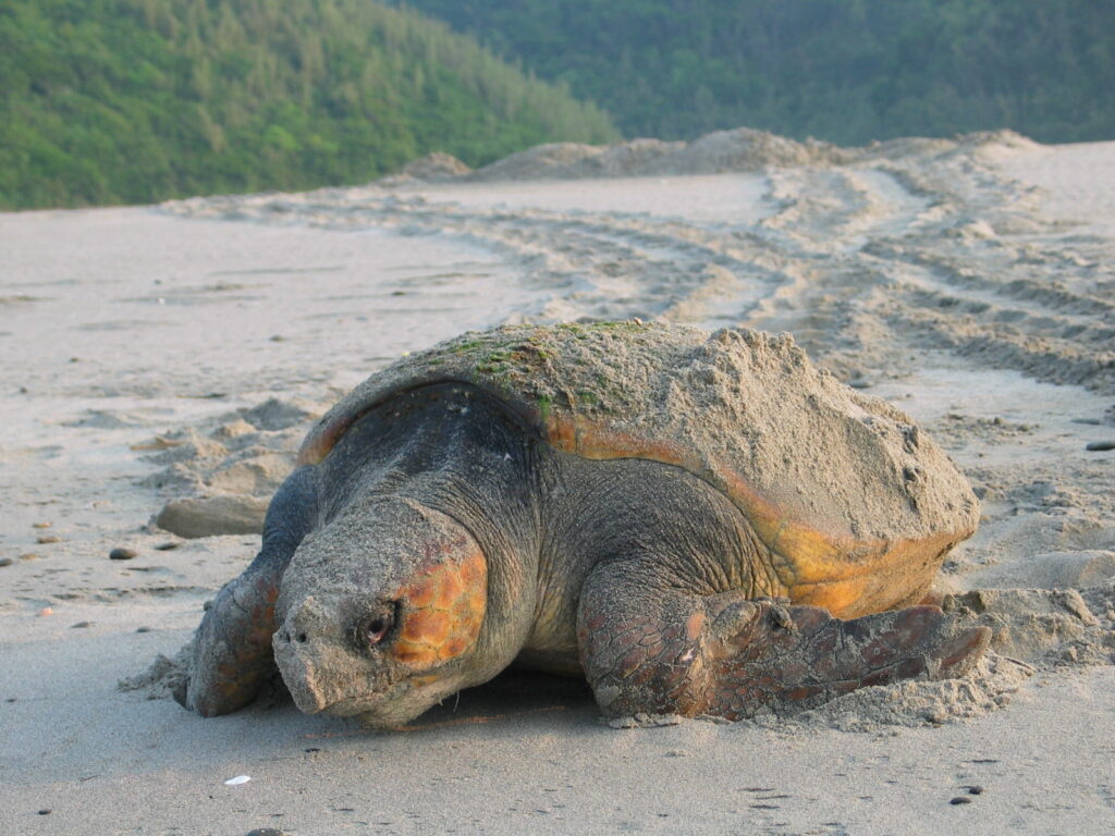 アカウミガメは戻り、