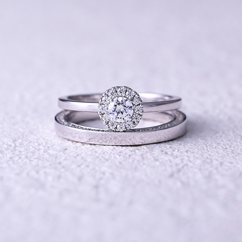 センターのダイヤモンドをぐるりとダイヤモンドで囲むデザイン。