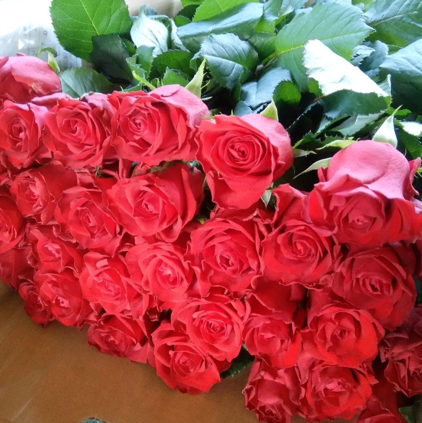 バラを受け取る人たちの
